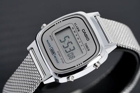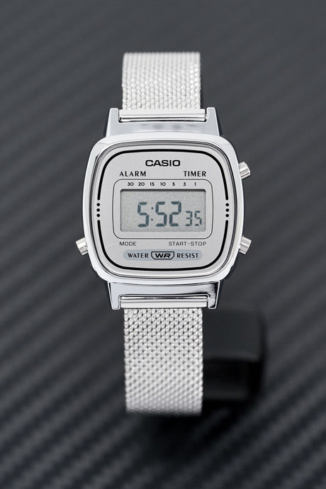 Casio Ladies Watch Digital Vintage Classic Milanese Silver LA670WEM-7DF