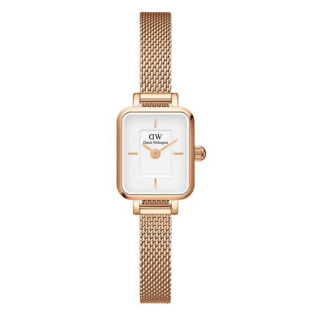 The Quadro Mini, which was created at the nexus of jewelry and watches, is a fascinating device. With two index markers for a minimalist appearance and a compact champagne Quadro dial with a sophisticated sunray finish, this is our smallest watch to date. The fabric-like mesh bracelet has the dainty charm of an elegant bracelet, but it can be switched out, giving the piece even more versatility. Similar to the majority of our timepieces, this one is made of sturdy 316L stainless steel and has a superior gold plating. So, enjoy it as a beautiful piece of jewelry and wear it as a watch!