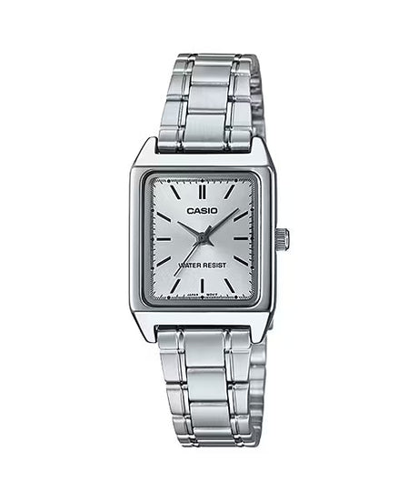 Casio Ladies' 22mm Rectangular Silver Stainless Steel Watch
