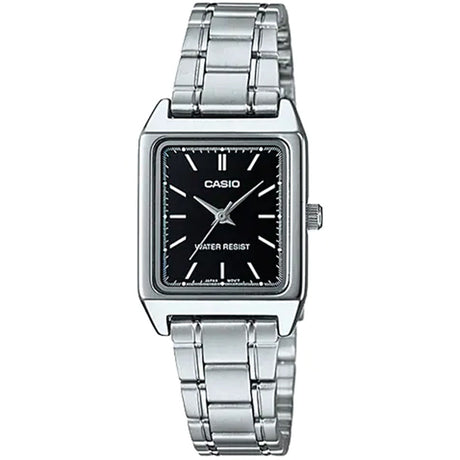 Casio Ladies' 22mm Rectangular Black Stainless Steel Watch