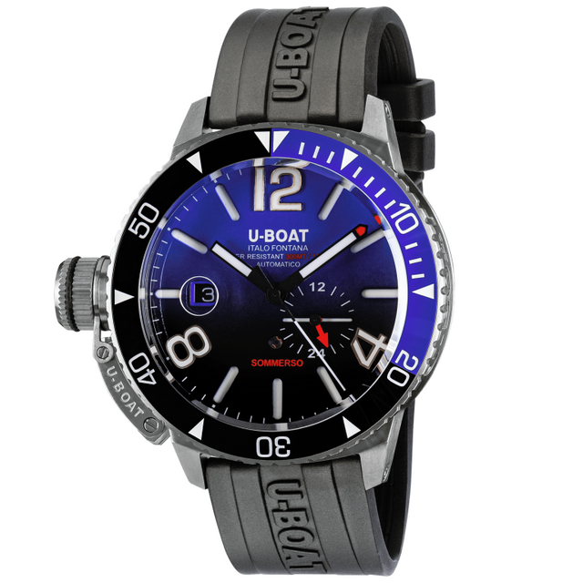 The U-Boat Sommerso Ceramic Blue Ref. 9519 delivers serious dive capability with bold Italian design, defined by its blue and black ceramic bezel.